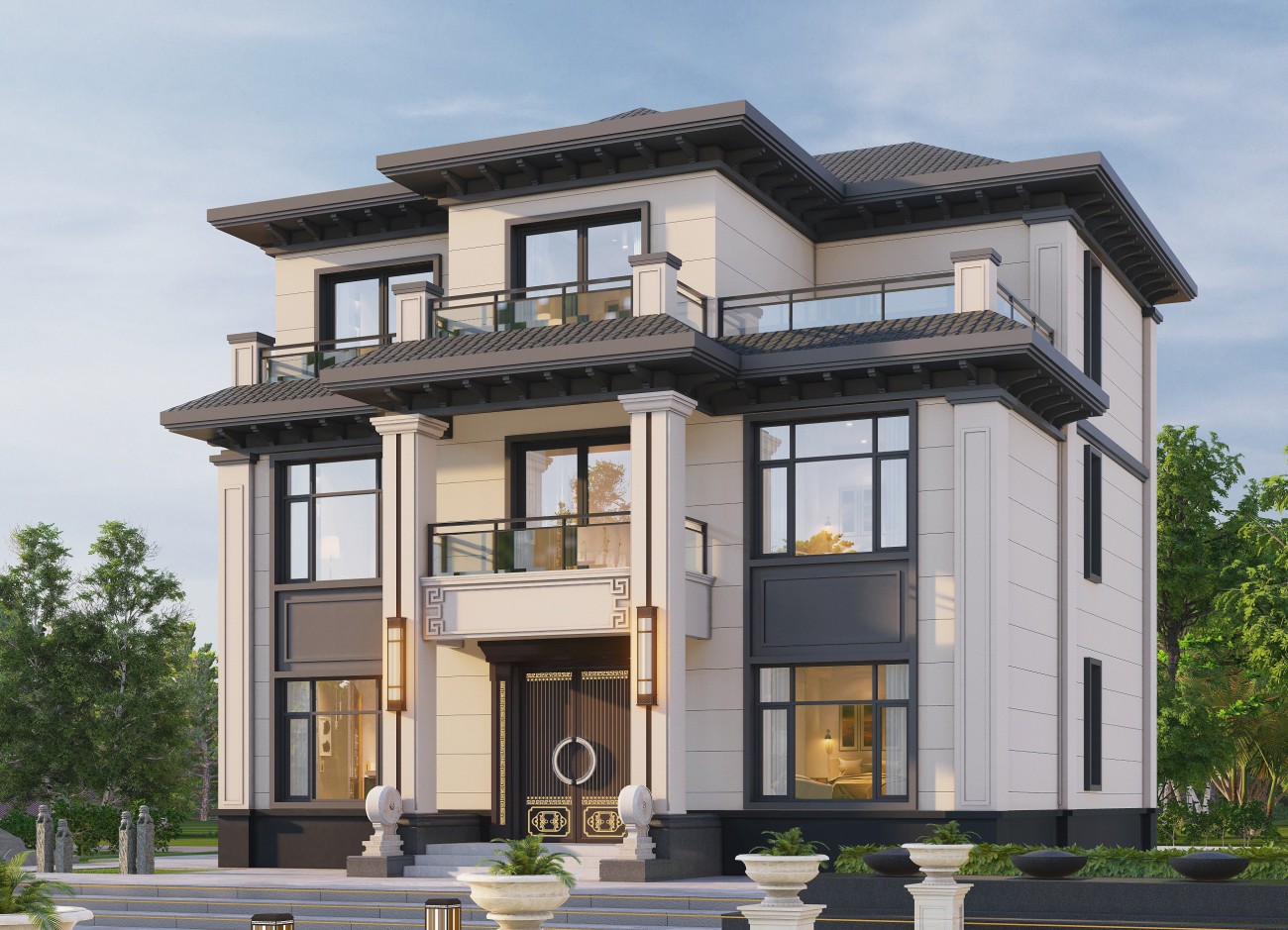 大渡口12 新中式两层半(12.8x13.06米)-【易设计】